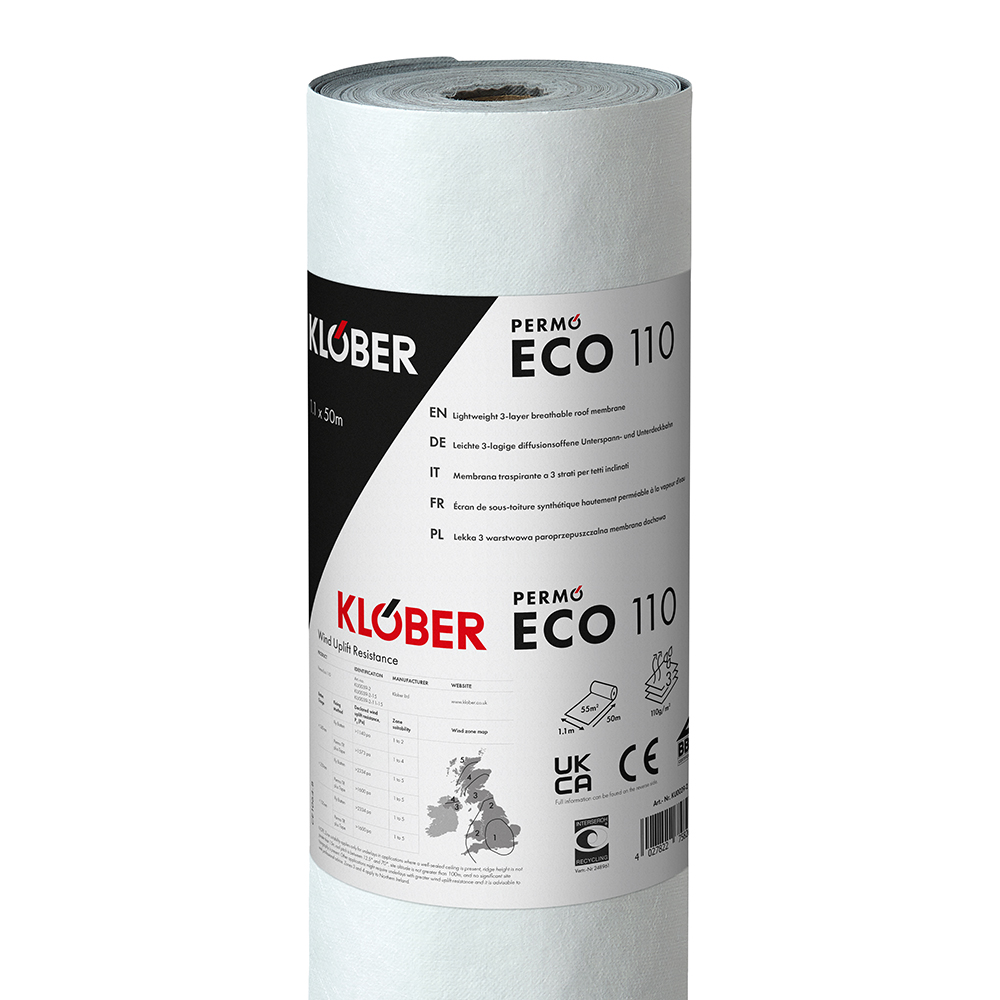 Part of The Everyday Membranes range, Eco 110 is a lightweight value membrane. Made of a 3-layer composition, it’s a cost-effective membrane solution for budget conscious projects. The three-layer, vapour-permeable roof membrane allows the roof structure to breathe, supporting to control condensation. The fleece of Eco 110 is made up of up to 30% recycled materials and is fully recyclable. It is BBA approved for cold and warm roofs.